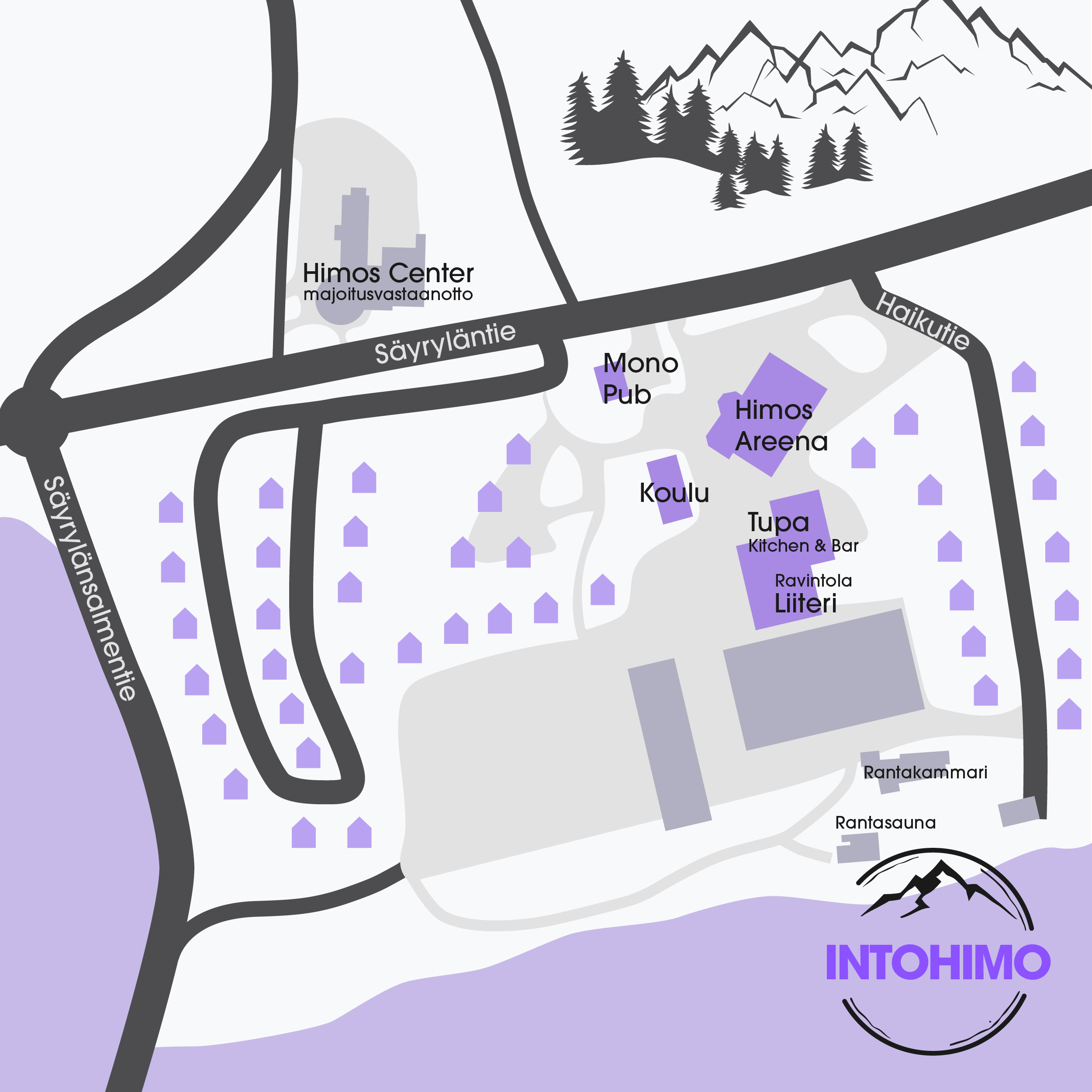 Kaikki viikonlopun ohjelma tapahtuu lähellä Himos Areenaa. Kokoustoimisto ja tradeshow-alue löytyvät Mono Pubista.